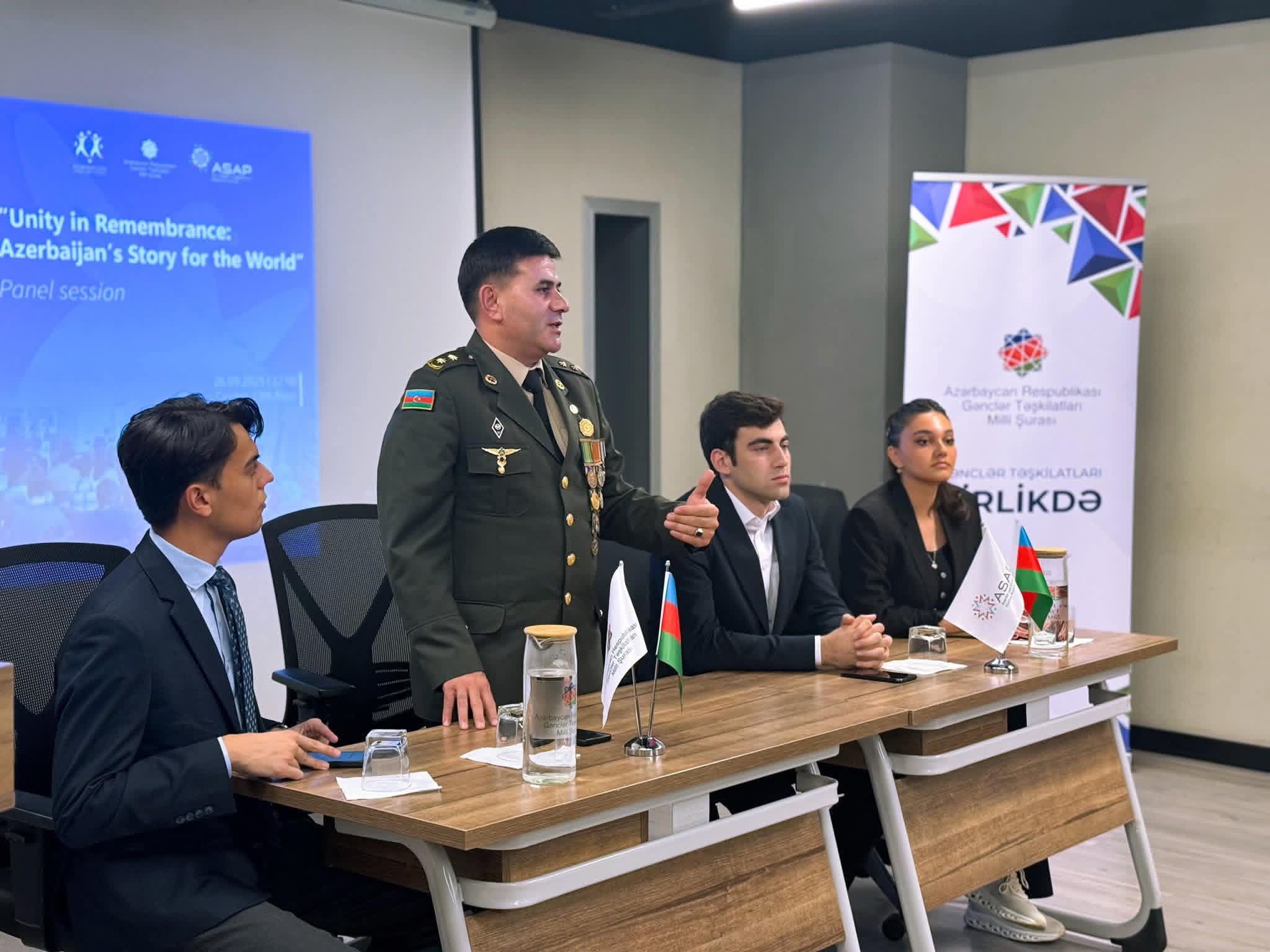 “Yadda birlik: Azərbaycanın dünya üçün hekayəsi” mövzusunda Panel Müzakirəsi keçirilib. 27 Sentyabr Anım Günü münasibətilə iştirakçılar Azərbaycanın tarixi və mədəniyyəti ilə tanış olub, günün mənası haqqında fikirləşiblər. Tədbirdə Vətən Müharibəsi iştirakçısı öz fikirlərini bölüşüb, Azərbaycanın tarixi-mədəni yaddaşı ilə bağlı müzakirələr aparılıb, maraqlı sual-cavab sessiyası keçirilib. #AnmaGünü #Azerbaijan #YouthDialoqu